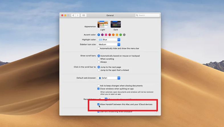 Handoff is not an app, so you don’t need to download anything from the App Store. Instead, you need to enable this feature on all devices. To set this up on your Mac, select the Apple menu icon and click System Preferences > General. If it’s not already enabled, select the option “Allow Handoff between this Mac and your iCloud devices“.