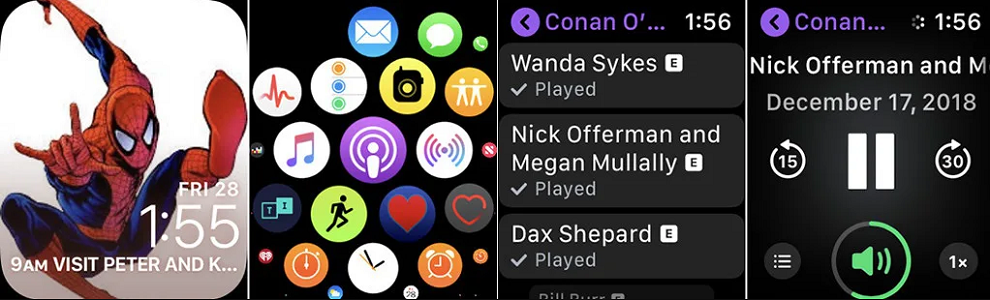 To exchange data between your Apple Watch and your iOS device, click on Digital Crown to go to the home screen. Click an app like Messages, News, Stocks, or Podcasts.