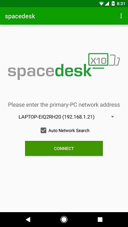 Installing both applications makes Spacedesk very easy to use. First, make sure your Android device is connected to the same Wi-Fi network as your computer, then just open the Spacedesk app on your phone or tablet. The app automatically detects your computer, so in most cases you just need to click Connect.