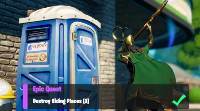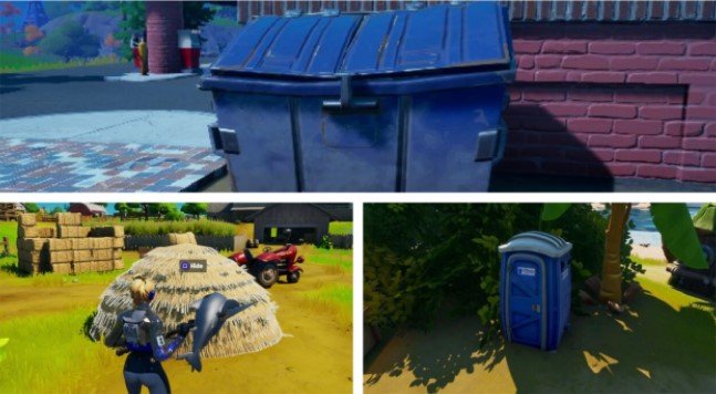 Unlike the confusing verbiage with this week’s forage for food quest, this challenge is completely easy, destroying different hiding places. Rather than a hiding spot like a bush or behind a tree, hiding places in Fortnite in this sense refer to some objects that the players can interact with to completely conceal themselves, including dumpsters, port-o-potty, and hay bales/hay stack. While discovering at least one of these is an easy task at the majority of Fortnite’s locations, destroying all three in a single match are able to prove very difficult if you do not know where to go.