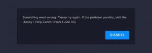 Disney Error Code 83 Visit the Disney Help Center November 10, 2020 Alfin Dani Leave a commentFacebookTwitterWhatsAppTelegramPinterestLinkedInEmailPost navigationPrevious PostHow to Fix Disney Error Code 83 “Visit the Disney+ Help Center”
