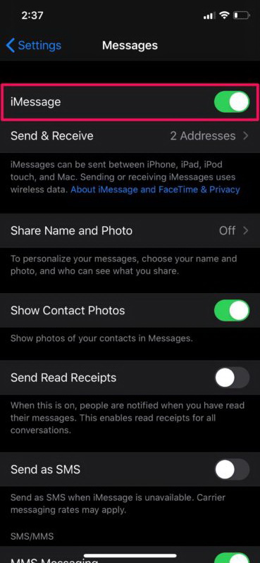 If you have problems with SMS texts in general but not with iMessages, you can also follow some specific SMS troubleshooting steps here.