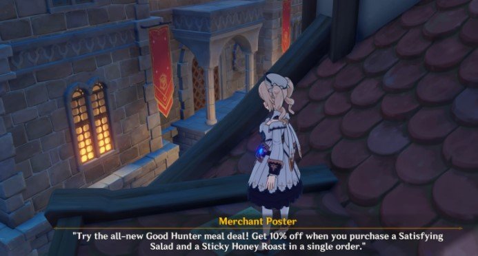 Once you find poster 1, you can continue to get the second poster which can be found on the roof of the building where the Crafting Bench in Mondstatd is located. Crafting Bench here is located near Timaeus in Mondstadt or next to the Teleport Waypoint in the southern half of Liyue Harbor.
