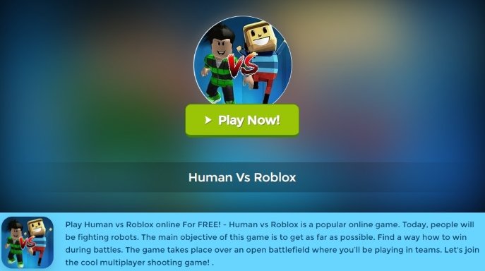 start playing the Human Vs Roblox September 8, 2021 Alfin Dani Leave a commentFacebookTwitterWhatsAppTelegramPinterestLinkedInEmailPost navigationPrevious PostUFreeGames Roblox vs Human